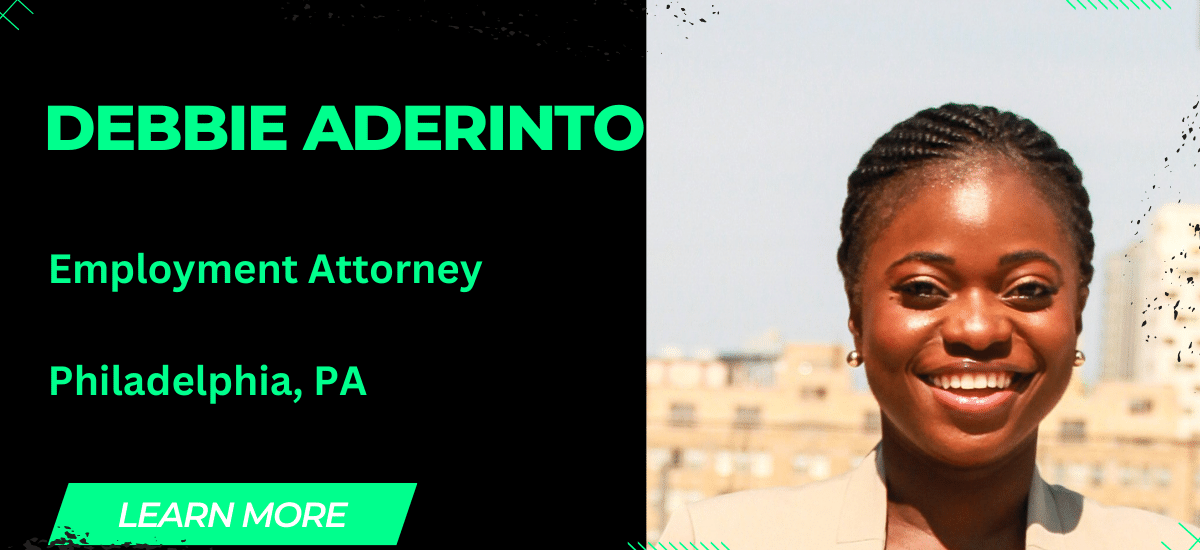 Adebola Debbie Aderinto is a Philadelphia attorney specializing in labor and employment law. Her experience moving from Nigeria to the United States at the age of 11 paved the way for a remarkable career in